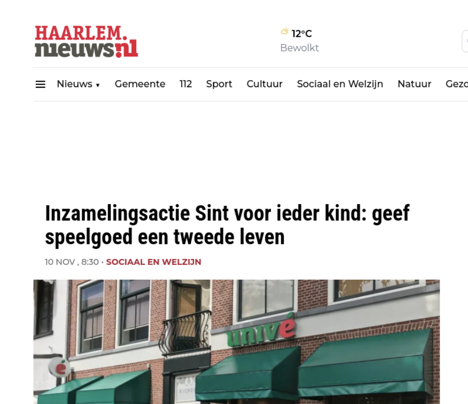 Univé Noord-Holland heeft twaalf fysieke winkels, die allemaal deelnamen aan de inzamelactie. Voor iedere vestiging maakten we een apart persbericht en stuurden deze uit naar lokale media. Zo riepen we inwoners in elke gemeente op om speelgoed te doneren in hun eigen Univé-winkel.