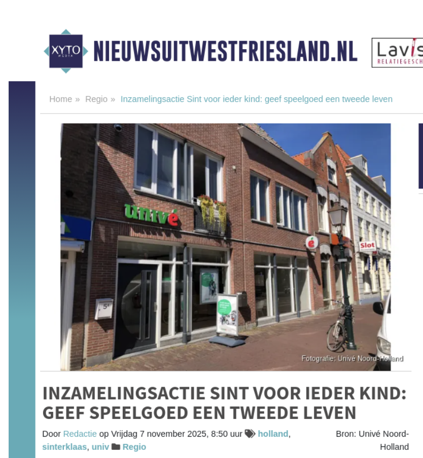 Sint voor ieder kind is een mooi voorbeeld van hoe een grote campagne van Univé Noord-Holland extra impact krijgt door de kracht van lokale media. Bij Continews vinden we het waardevol om op deze manier bij te dragen aan maatschappelijke initiatieven die écht verschil maken.