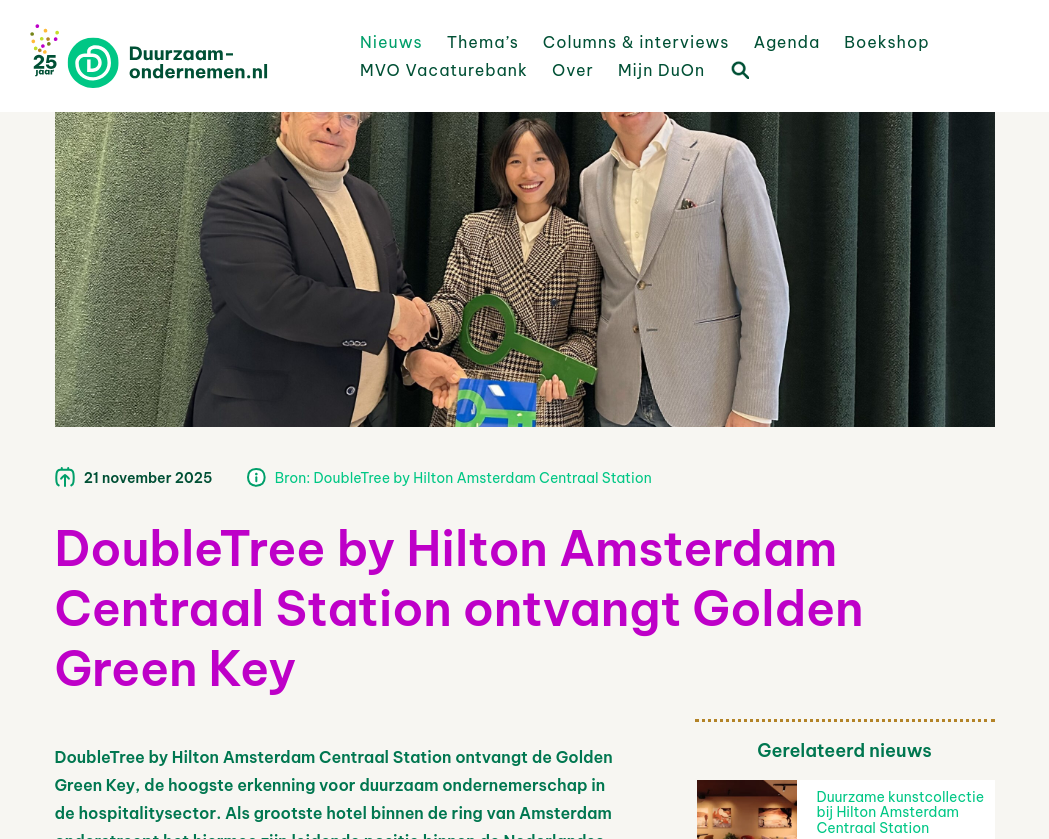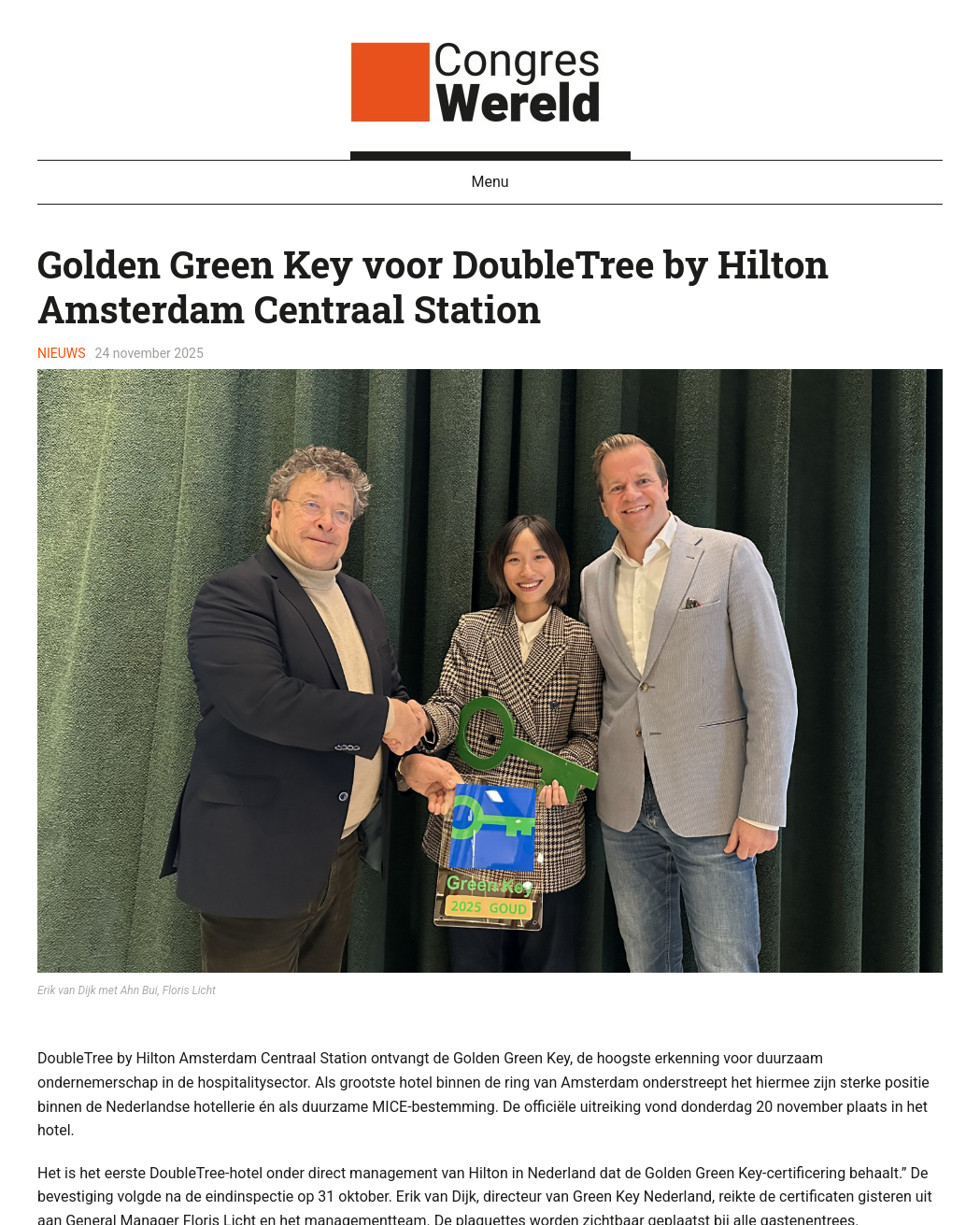 Volgens General Manager Floris Licht heeft het hotel drie jaar lang toegewerkt naar dit resultaat. Het behalen van de Golden Green Key is dan ook een prestatie waar hij, terecht, trots op is. “Dit is opnieuw een mooie kans om aan onze gasten, medewerkers, boekers en de lokale community te laten zien dat gastvrijheid en een betere toekomst hand in hand gaan.”